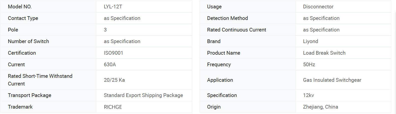 LYL-12T ロード スイッチは、GB3804-2004「3.6kV~40.5kV 高電圧 AC ロード スイッチ」および GB16926-1997「AC 高電圧ロード スイッチとヒューズの組み合わせ機器」の関連要件に準拠しています。