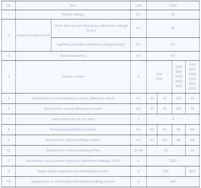 CT68スプリング動作メカニズムを備えた24kV真空回路ブレーカー