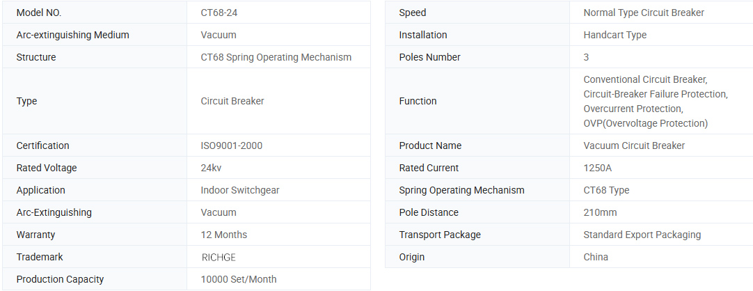 モデルCT68 -24 CT68スプリング動作メカニズムでの屋内真空回路ブレーカーの使用。 24kVの電圧を備えた3相AC、50 Hzの屋内電源脱布機器です。