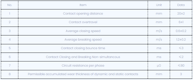 回路ブレーカーを調整した後、機械的特性パラメーターを以下に示します。