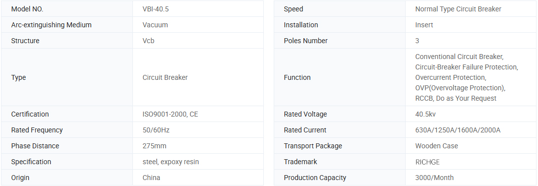 VBI屋内高電圧Vacum Circuit Breakerは、3相AC 50Hzと定格電圧が40.5kVの屋内デバイスです。産業および鉱業企業、発電所、変電所の電気機器の制御と保護、特に頻繁な操作のある場所に使用できます。スイッチキャビネットのサーキットブレーカーの設置形式は、固定型またはTrolley.VBI屋内高電圧真空回路ブレーカーにインストールされた引き出し可能なタイプのいずれかであり、信頼性の高いパフォーマンスがあり、簡単にインストールできます。これは、高電圧伝送および流通システムの制御と保護に最適な選択です。