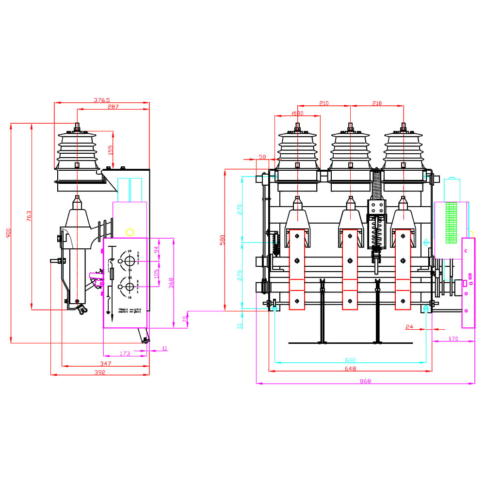 FKN12-12R.D/100-31.5型屋内交流高電圧ロードスイッチ・ヒューズ組合せは、FKN12-12DロードスイッチとXRNTポート12高電圧限流ヒューズを組み合わせた屋内高圧開閉装置です。短絡電流までのあらゆる電流を確実に遮断できます。負荷スイッチは動作電流を遮断し、ヒューズは短絡電流を遮断し、動作電流と全短絡電流の間の過電流を共同で遮断し、ヒューズが負荷スイッチをオープンにします。
