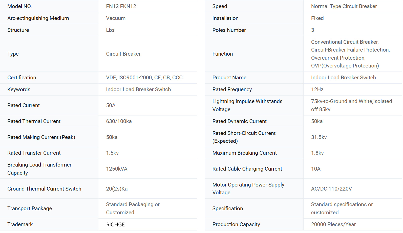 FKN12-12D/630-20 屋内 AC 高電圧負荷スイッチは、定格電圧 12KV、定格周波数 50HZ の三相高電圧開閉装置です。これは、負荷電流、閉ループ電流、無負荷変圧器およびケーブル充電電流、複合短絡電流のスイッチングに使用されます。接地開閉器を備えた負荷開閉器は短絡電流に耐えることができます。
