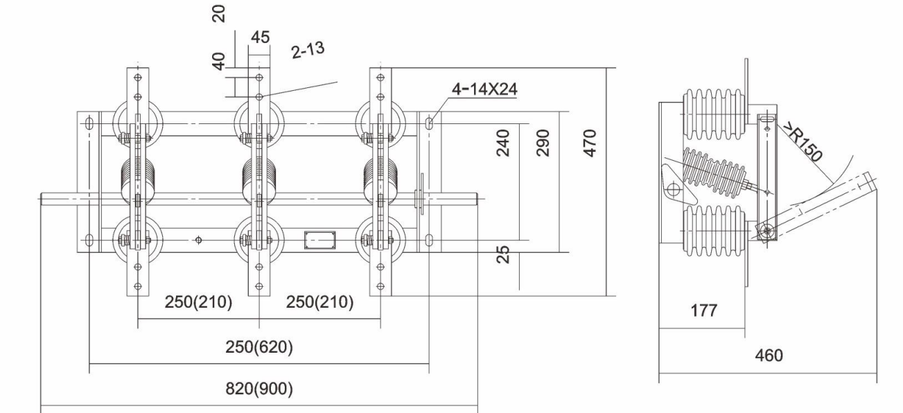 - 単列絶縁スイッチ: 架空バスバーの下の垂直スペースを電気絶縁として直接使用し、スペースを節約し、接続導体を減らし、明確な切断状態を提供します。特に超高圧送電に適しています。