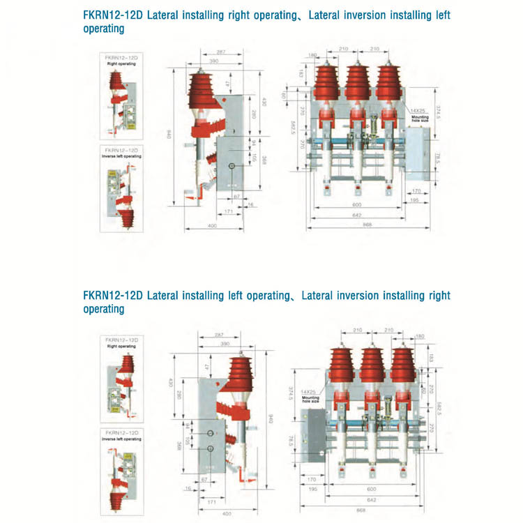FKRN24Dロードブレークスイッチが高電圧電流限定ヒューズ(ストライカーを含む)を装備すると、トランス、ケーブル、オーバーヘッド配線の保護および制御装置として機能する負荷ブレイクスイッチとヒューズの組み合わせ装置になります。位相または多相ヒューズの融合がある場合、ロードブレイクスイッチ自動ブレーキ3フェーズ。