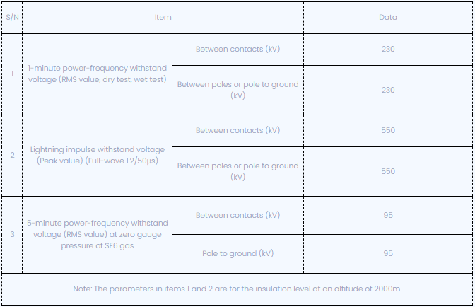 硫黄ヘキサフルオリドガスの固有の高い断熱強度と、回路ブレーカーの最適な接触移動により、回路ブレーカーは再燃なしで容量性電流を破壊します。外部断熱レベルは高く、外部断熱材はクリープ距離が大きく、クリープ比距離は31mm/kV以上で、汚れ抵抗性能は優れています。また、過酷な環境で安全に動作する可能性があります。