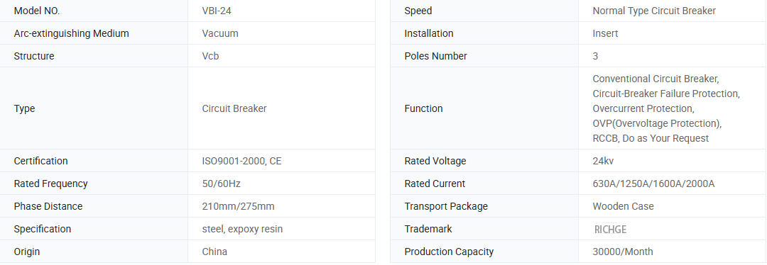 VBI-24屋内高電圧真空回路ブレーカーは、3相AC 50Hzであり、24kVの屋内デバイスの定格電圧、産業および鉱業企業、電気機器の制御と保護目的としての発電所と変電所、およびその場所の頻繁な運用のための電圧です。